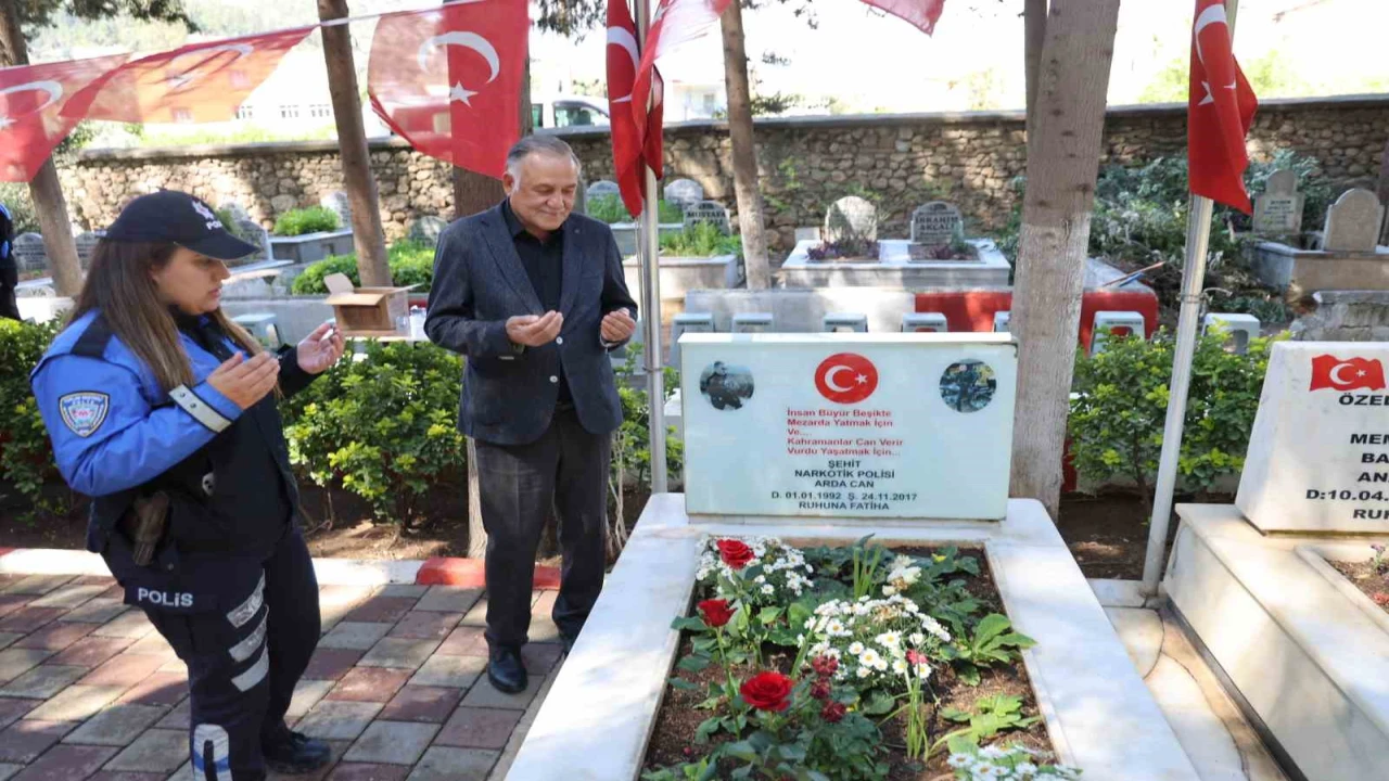 Adana’da 8 Haziran 2017’de motorize ekipte iken kaza geçirerek şehit düşen polis memuru Arda Can’ın kabrinde dua eden babası Serdar Can da, "Polislerimizle gurur duyuyoruz. Onların ayağına taş değmesin. Benim oğlum Adana’da şehit oldu. Bugün duygu dolu anlar yaşıyoruz. Tüm polis teşkilatımızın günü kutlu olsun" diye konuştu.