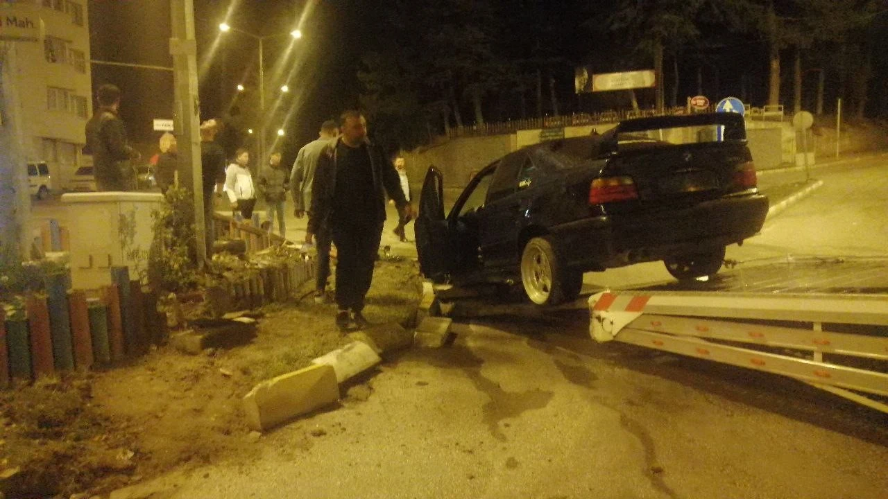Isparta’nın Yalvaç ilçesinde polis ekiplerinin "dur" ihtarına uymayan sürücü, kaçarken otomobilinin direksiyon hâkimiyetini kaybederek refüje çarptı.