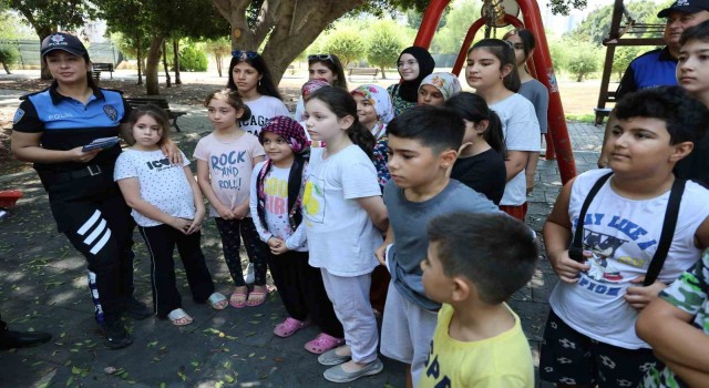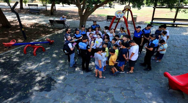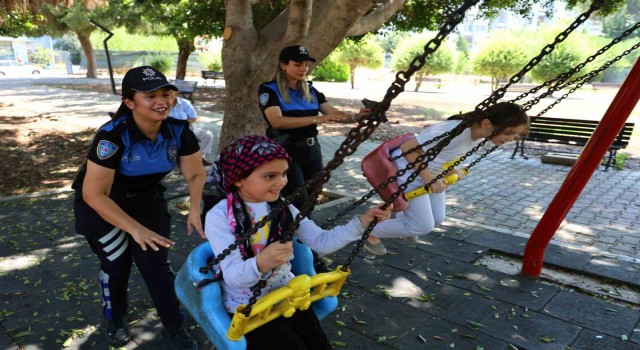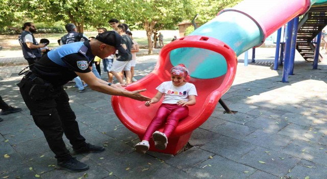 Bilgilendirme sonrasında polisler, çocuklarla birlikte oyun parkında oyunlar oynadı. Çocuklarla salıncağa ve tahterevalliye binen ekipler kaydıraktan da kaydı.