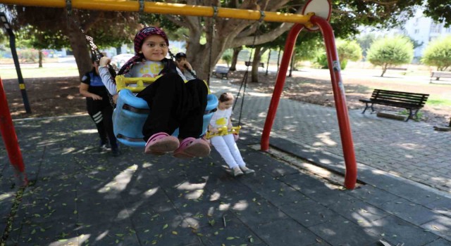 Adana’da Toplum Destekli Polislik ve Siber Suçlarla Mücadele ekipleri, parkta oyun oynayan çocukları ve ailelerini dijital oyun bağımlılığına karşı uyarıp çocuklarla birlikte salıncakta sallanıp tahterevalliye bindi.