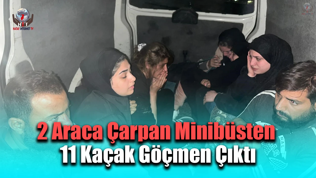 HATAY (İHA) - Hatay'da polisin 'Dur' ihtarına uymayan ve 2 araca çarpan minibüste 11 yabancı uyruklu göçmen yakalandı.