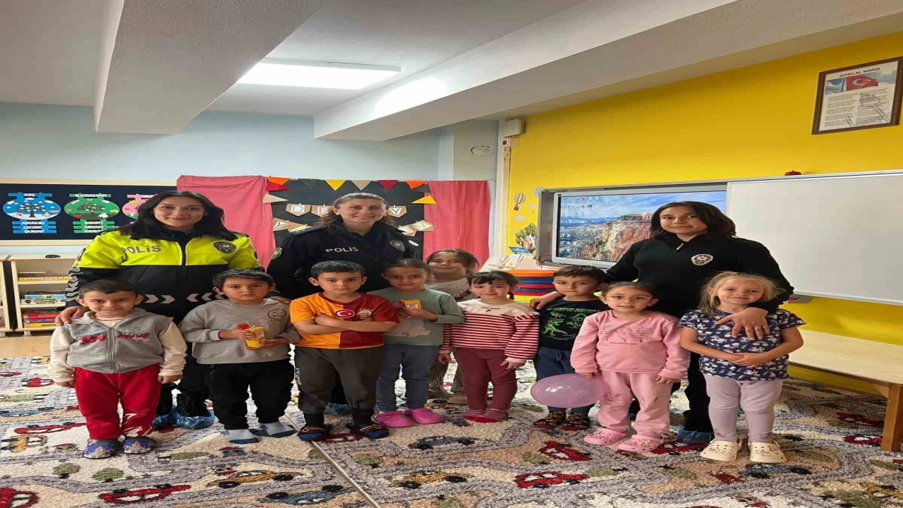 Antalya’nın Gazipaşa ilçesinde polis ekipleri, Polis Haftası kapsamında anasınıfı öğrencilerini ziyaret etti. Etkinlikte trafik eğitimi, boyama etkinliği ve oyunlarla keyifli anlar yaşandı.
