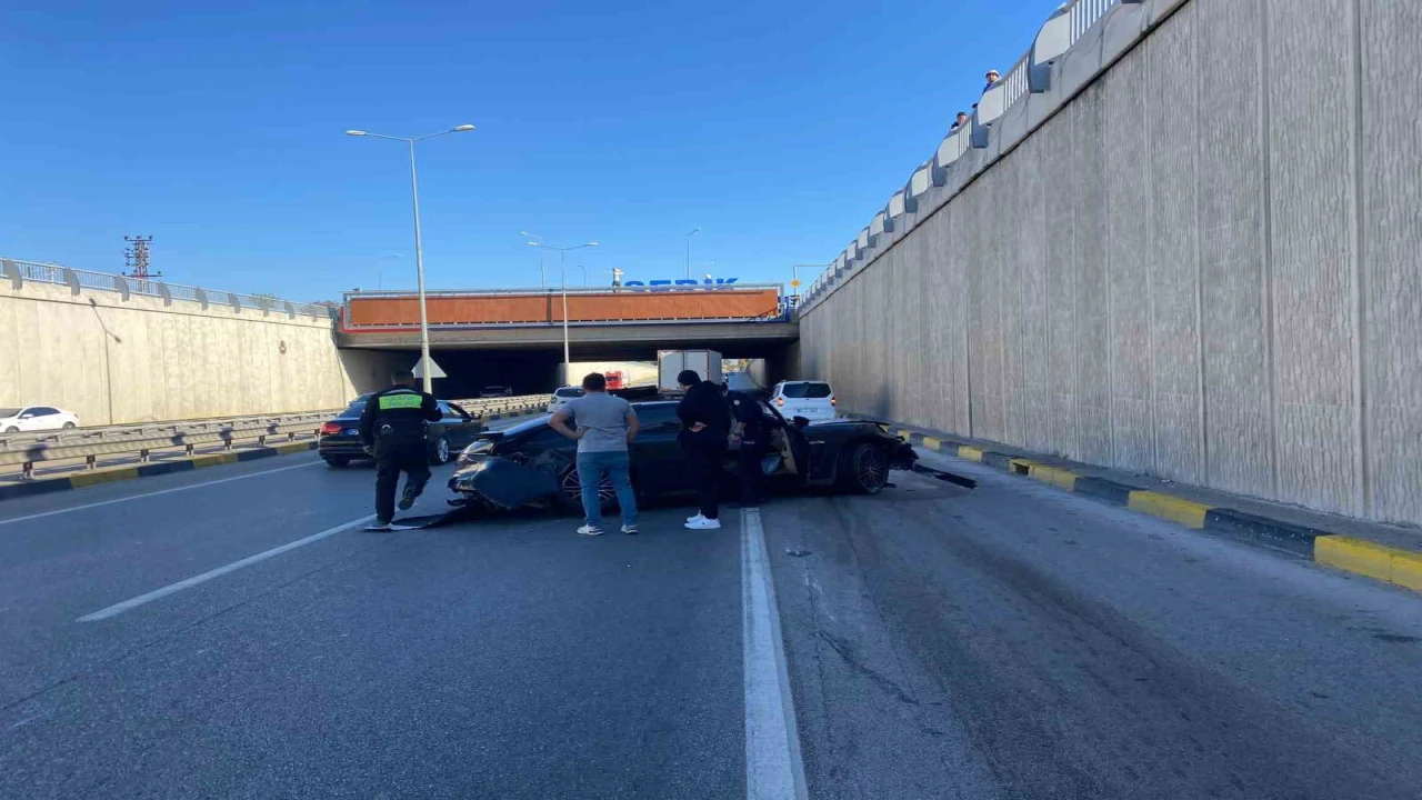 Antalya’nın Serik ilçesinde lüks otomobil, sürücüsünün direksiyon hâkimiyetini kaybetmesi sonucu önce aynı yönde seyir halinde olan bir otomobile, ardından alt geçidin duvarına çarptı. Kazada 1 kişi ağır yaralandı.