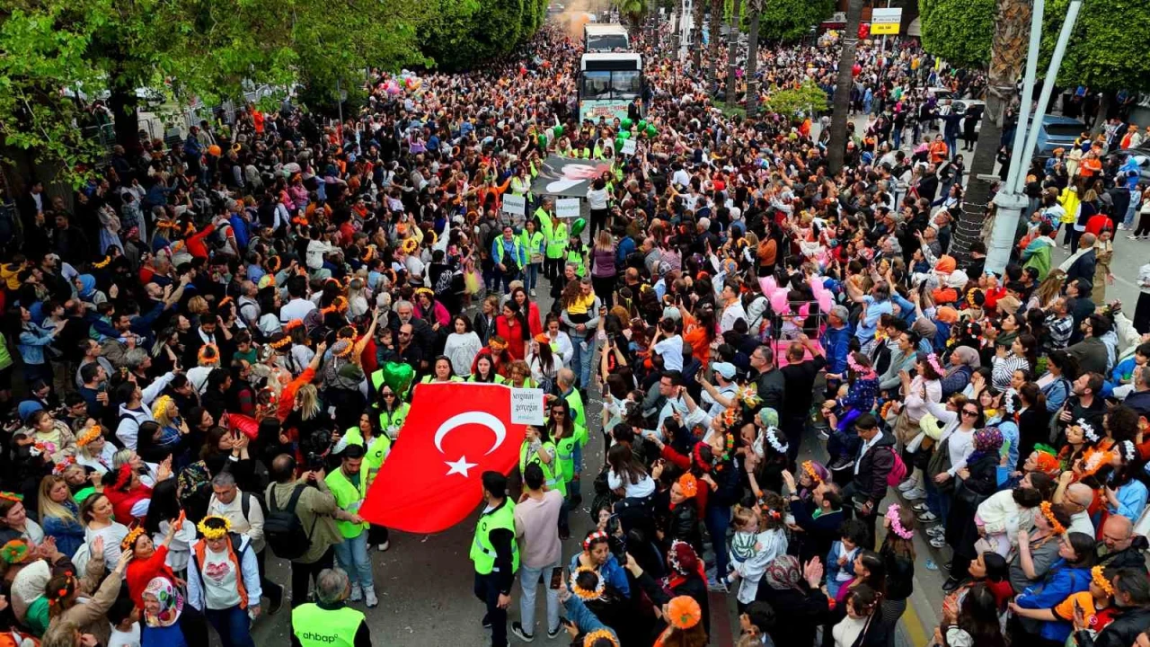 Korteje katılamayan bazı Adanalılar ise balkonlarına çıkıp alkışlayarak karnaval heyecanına ortak oldu. Vatandaşların cep telefonlarıyla görüntülediği kortej, Ziyapaşa Bulvarı ve Atatürk Caddesi’nde devam ettikten sonra Uğur Mumcu Meydanı’nda son buldu.