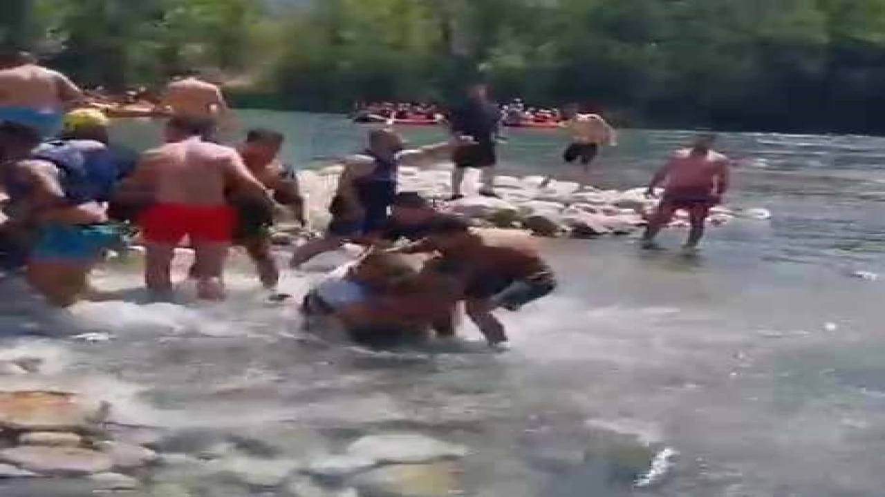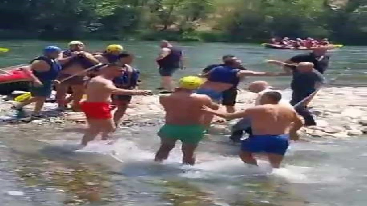 Antalya’da su sporları merkezinde can yeleği giymeyen bir grup ile kendilerini yelek giymeleri konusunda uyaran grup arasında kavga çıktı. Suyun içinde yaşanan kavgada tekme ve yumrukların yanı sıra rafting kürekleri de kullanıldı.