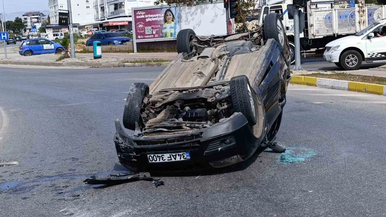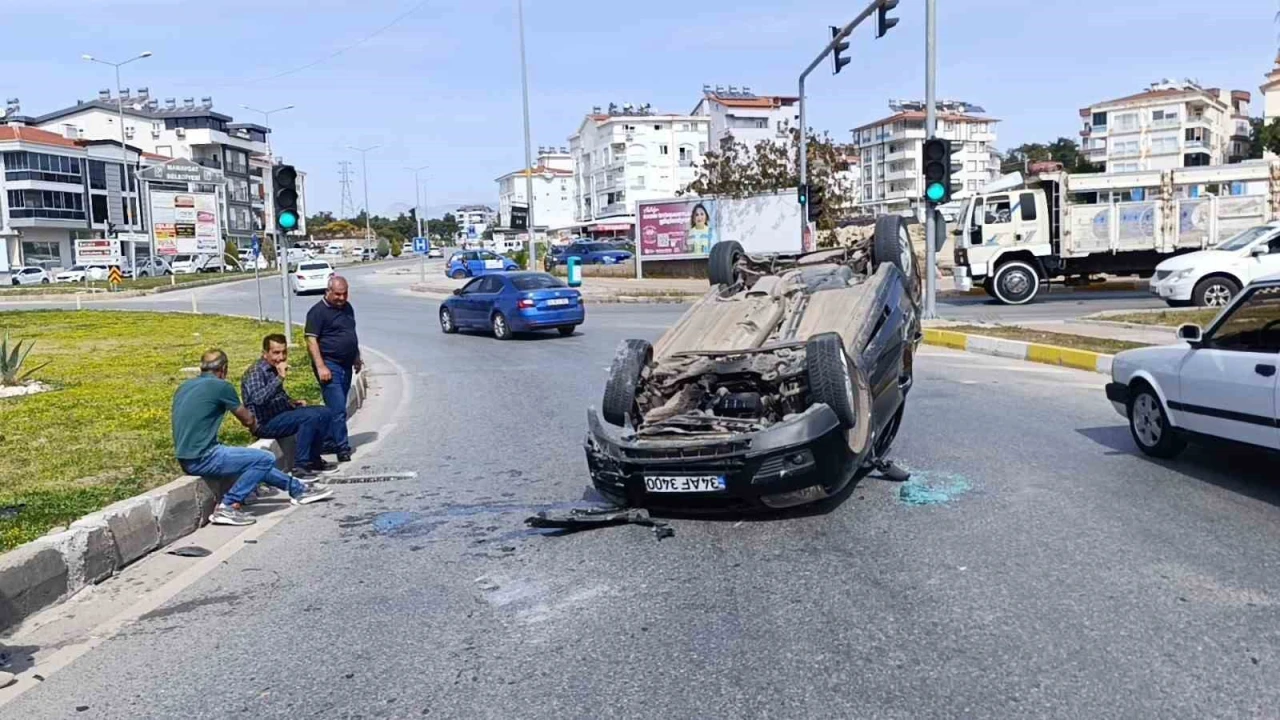 Antalya’nın Manavgat ilçesinde meydana gelen kazada, refüj bordürlerine çarparak devrilen otomobilin sürücüsü yaralandı. Kaza anı güvenlik kamerasına saniye saniye yansıdı.