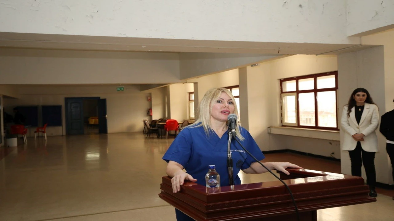 Rektör Özkan, hastane çalışanı Necibe Evrim Tongül’e günün anısına çiçek takdim etti. Rektör Özkan daha sonra katılımcılarla bir süre sohbet etti.