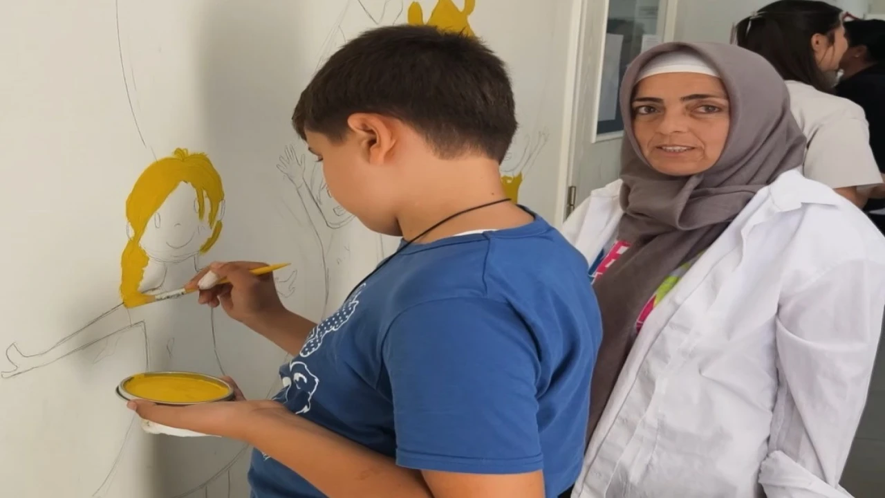 ADANA’DA 11 YAŞINDAKİ OTİZMLİ ÖMÜR KAAN, RESİM KURSU İLE ENGELLERİ AŞIYOR. BELEDİYENİN RESİM KURSUNDA KENDİNİ GELİŞTİREN ÖMÜR KAAN, ŞİMDİ KORİDORLARI BOYUYOR.