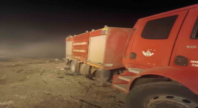 Hatay’ın Reyhanlı ilçesinde çıkan çöplük yangını, iş makinesinin yardımıyla söndürüldü.