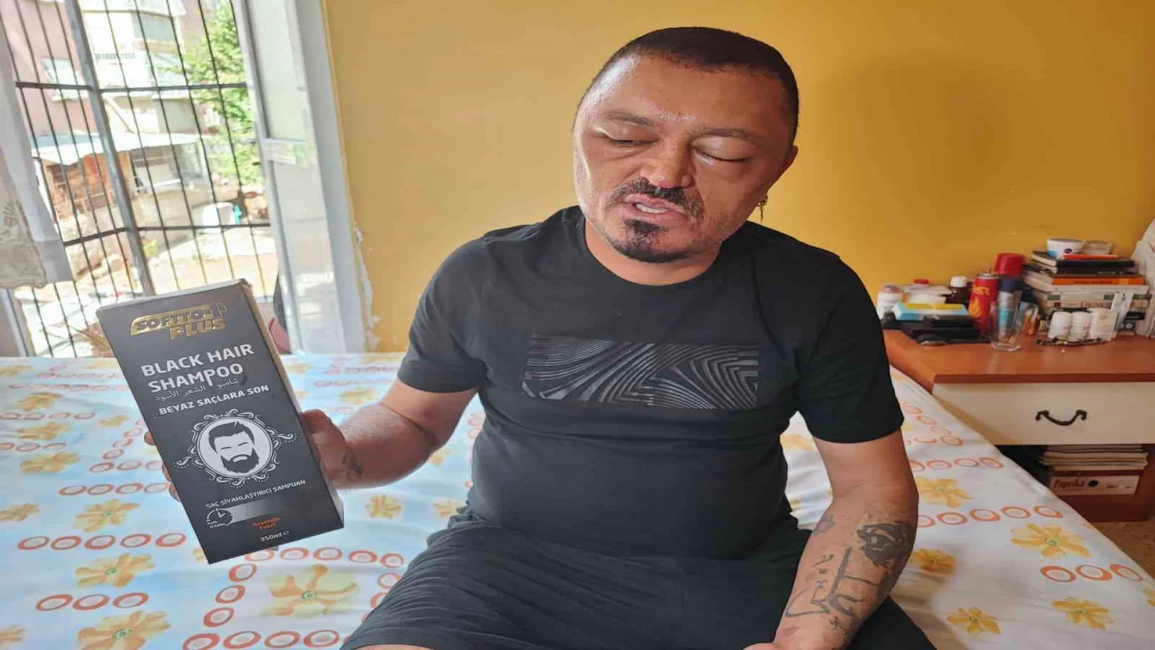 Adana’da yaşayan Murat Gözde (48), berber tavsiyesi üzerine internetten satın aldığı saç siyahlaştırıcı şampuanı kullandıktan sonra yüz ve gözünde şişlikler oluşup kafasında yara çıktı. Gözde, şampuanı üreten firmadan şikayetçi oldu.