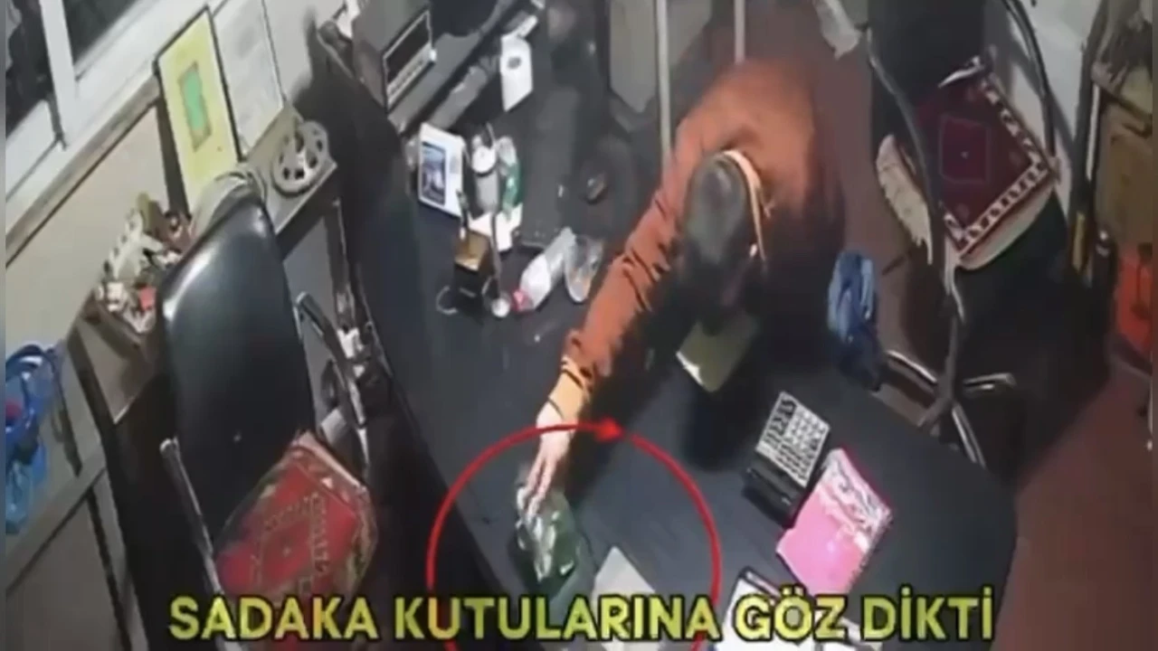 SADAKA KUTUSUNU ÇALAN ŞÜPHELİ, ÇALDIKLARIYLA YAKALANDI