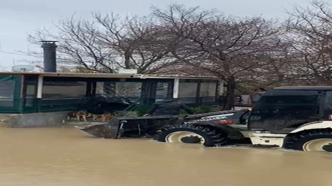 ANTALYA'NIN SERİK İLÇESİNDE ETKİLİ OLAN SAĞANAK SONRASI ETRAFI SULARLA ÇEVRİLMİŞ BİR EVDEKİ 4 KÖPEĞİ VATANDAŞLAR İŞ MAKİNESİ YARDIMIYLA KURTARDI.