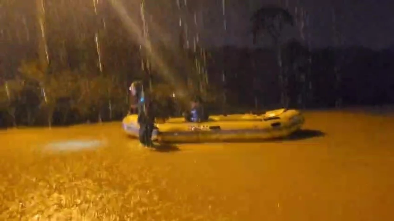 Sarı kod ile uyarılan Antalya’da dün gece başlayan e birçok bölgede etkili olan şiddetli yağış sabah saatlerine kadar sürdü. Yağış nedeniyle yollar adeta göle dönerken araç ve evlerinde mahsur kalan vatandaşlar AFAD ekipleri tarafından botla kurtarıldı.
