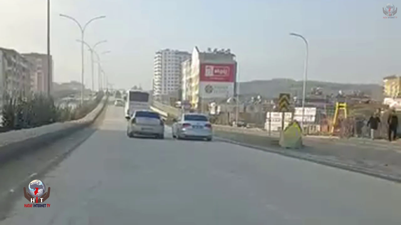 Antakya ilçesi çevreyolu üzerinde trafiği tehlikeye düşürerek ilerleyen otomobil sürücüsünü fark eden başka bir sürücü, cep telefonuyla o anları kayıt altına aldı.