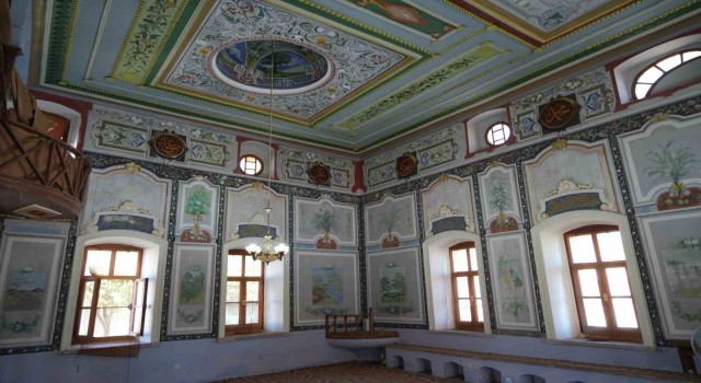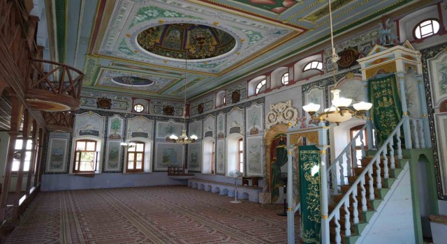 BURHANİYE İLÇESİNDE, TAVANI VE DUVARLARI DOĞA, BİTKİ VE MEYVE RESİMLERİYLE SÜSLENMİŞ CAMİDE, ZİYARETÇİ EKSİK OLMUYOR