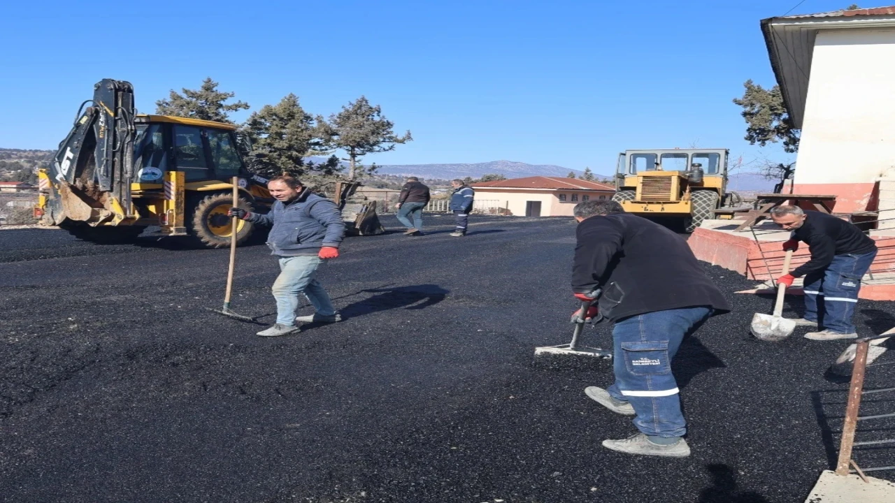 Saimbeyli Belediyesi okulların bahçelerini asfaltlıyor.
