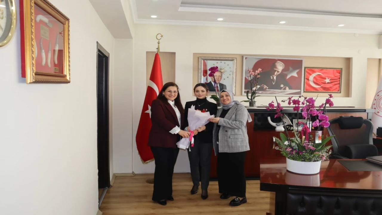 Saimbeyli Belediye Başkanı Mahmut Dal eşi Hülya Dal ile birlikte ilçede kamu ve esnaflar olmak üzere tüm kadın çalışanların yanında yer alarak hazırladıkları çiçekleri hediye etti.