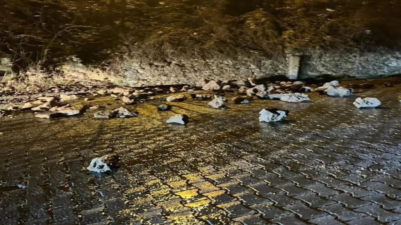 Adana’nın Saimbeyli ilçesinde aşırı yağış nedeniyle meydana gelen heyelanda taşlar yola düşerken, belediye ekipleri bölgede çalışma başlattı.
