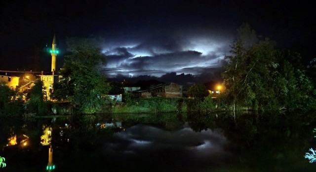 Meteoroloji Genel Müdürlüğü, aralarında Sakarya’nın da bulunduğu birçok şehri sağanak ve gök gürültülü yağış için uyarmıştı. Karasu ilçesinde de etkisini göstermesi beklenen yağış öncesinde başlayan şimşekler görsel şölen oluştururken geceyi adeta gündüze çevirdi. Gecenin karanlığını aydınlatan şimşekler objektiflere yansıdı.