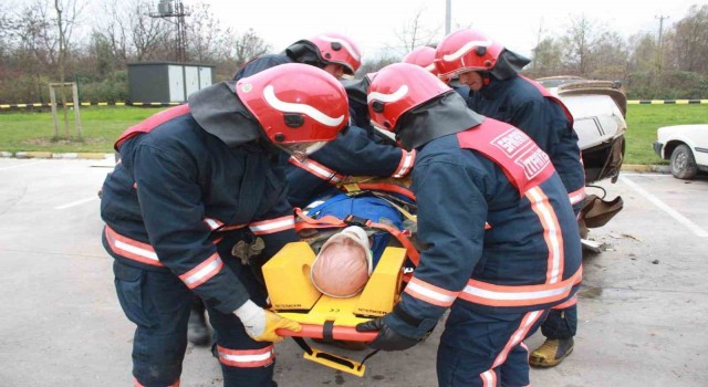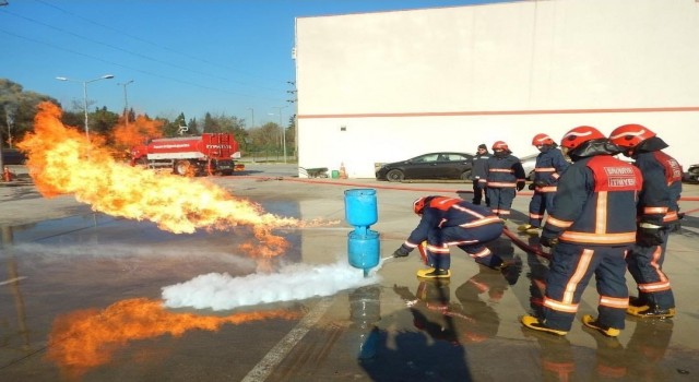 Sakarya Büyükşehir Belediyesi endüstriyel alanda faaliyet gösteren fabrikalar başta olmak üzere kamu kurumları, sivil toplum örgütleri, vatandaşlar ve çocuklara muhtemel afet anında yangınlara nasıl müdahale etmeleri gerektiğini gerçekçi bir uygulamayla öğretiyor.