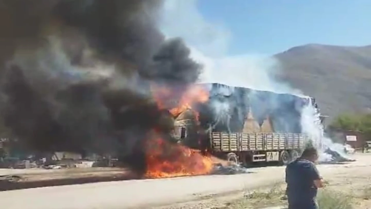 Kahramanmaraş’ta kamyonun kasasındaki samanlar elektrik tellerine takılarak yandı.