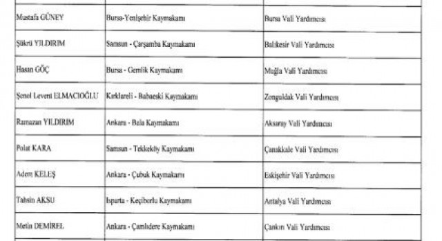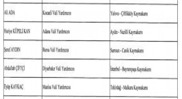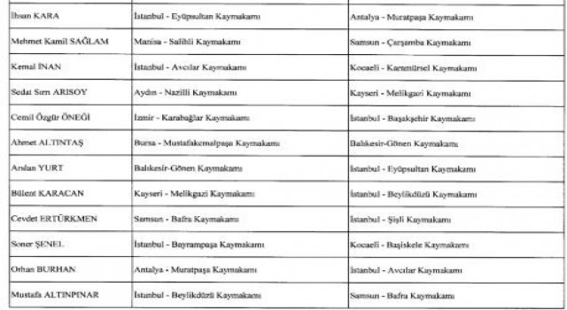 6 ilçedeki mevcut kaymakamların yeni görev yerleri de şu iller oldu: