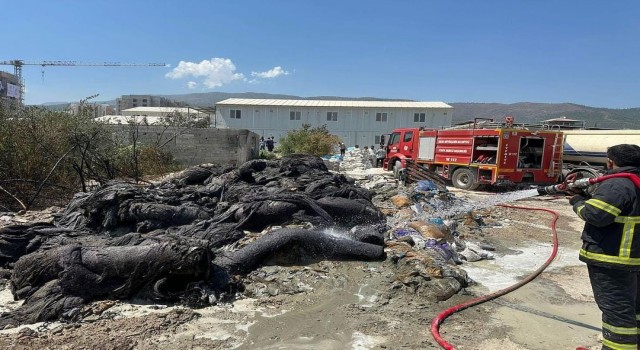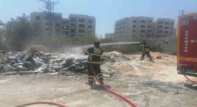 HATAY (İHA) - Hatay'da şantiye alanında inşaat malzemelerinin yanmasıyla yaşanan yangın itfaiye ekipleri tarafından söndürüldü.