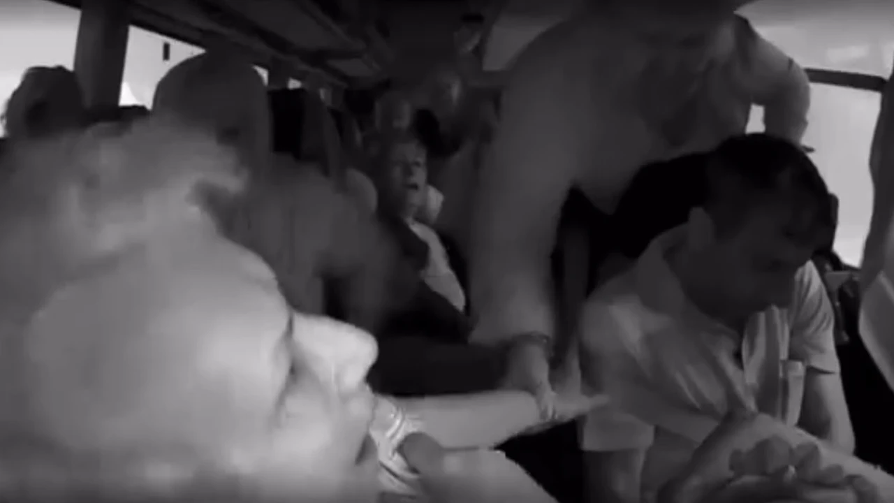 GÖRÜNTÜLERDE YOLCULARIN YAŞADIĞI PANİK VE KORKU DOLU ANLAR YER ALIRKEN, ŞOFÖRÜN İSE BİLİNCİNİN KAYBOLDUĞU ANLAR YER ALDI.