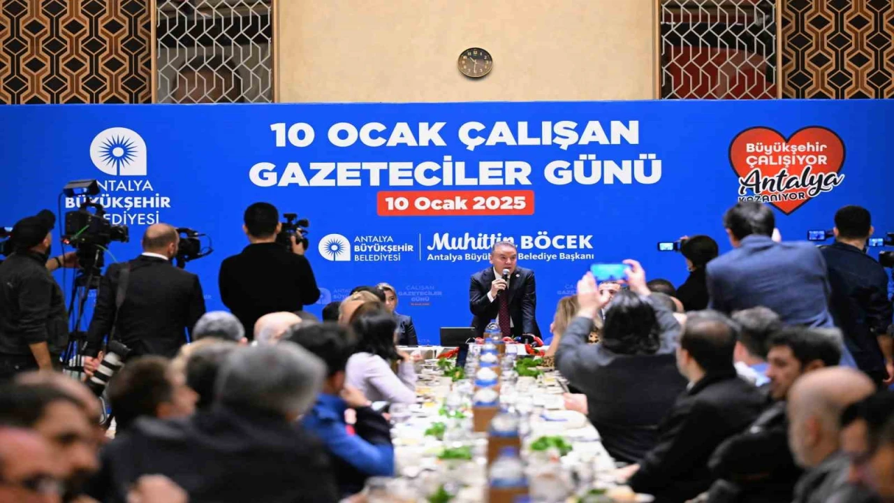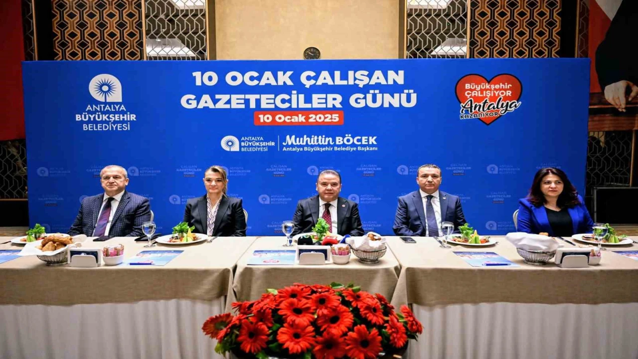 Antalya Büyükşehir Belediyesi ve Antalya Gazeteciler Cemiyeti iş birliğiyle, 10 Ocak Çalışan Gazeteciler Günü dolayısıyla düzenlenen etkinlikte gazetecilere yönelik özel bir program gerçekleştirildi. Programda, Antalya Büyükşehir Belediye Başkanı Muhittin Böcek ve Antalya Gazeteciler Cemiyeti Başkanı İdris Taş önemli açıklamalarda bulundu.
