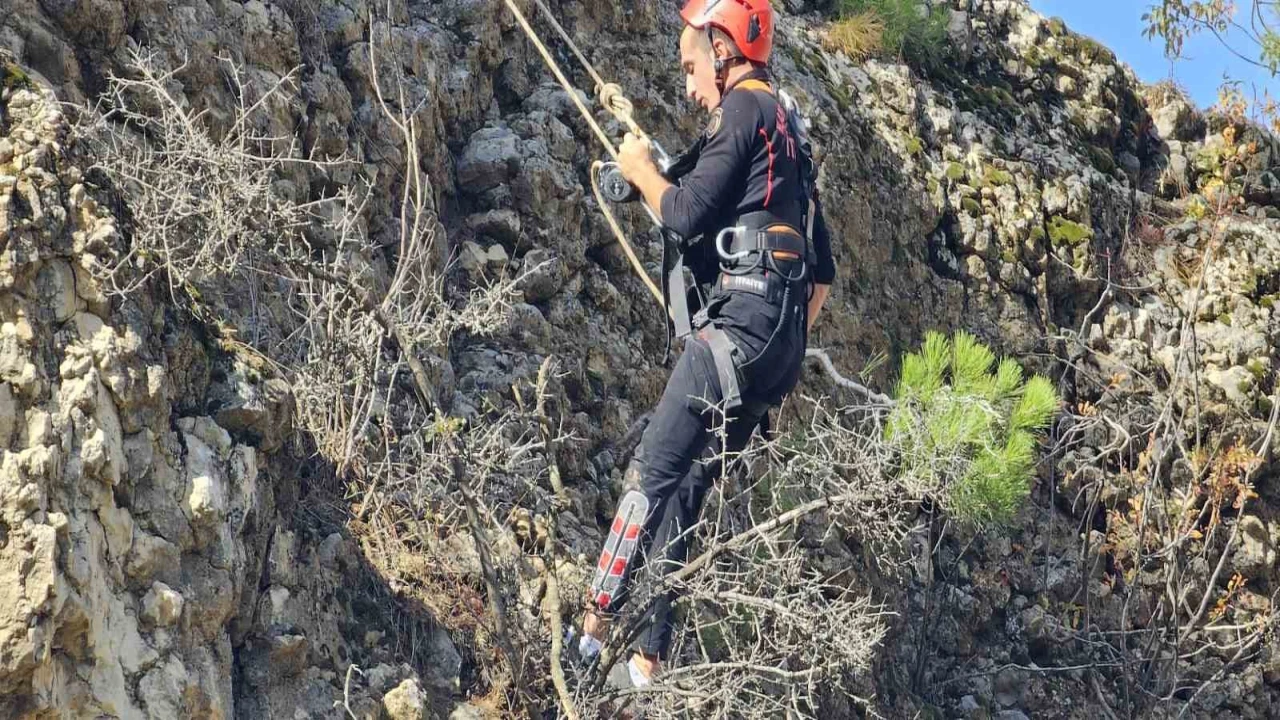 KAHRAMANMARAŞ’TA DAĞDA MAHSUR KALAN BİR KEÇİ EKİPLERİN ÇALIŞMASI İLE KURTARILDI