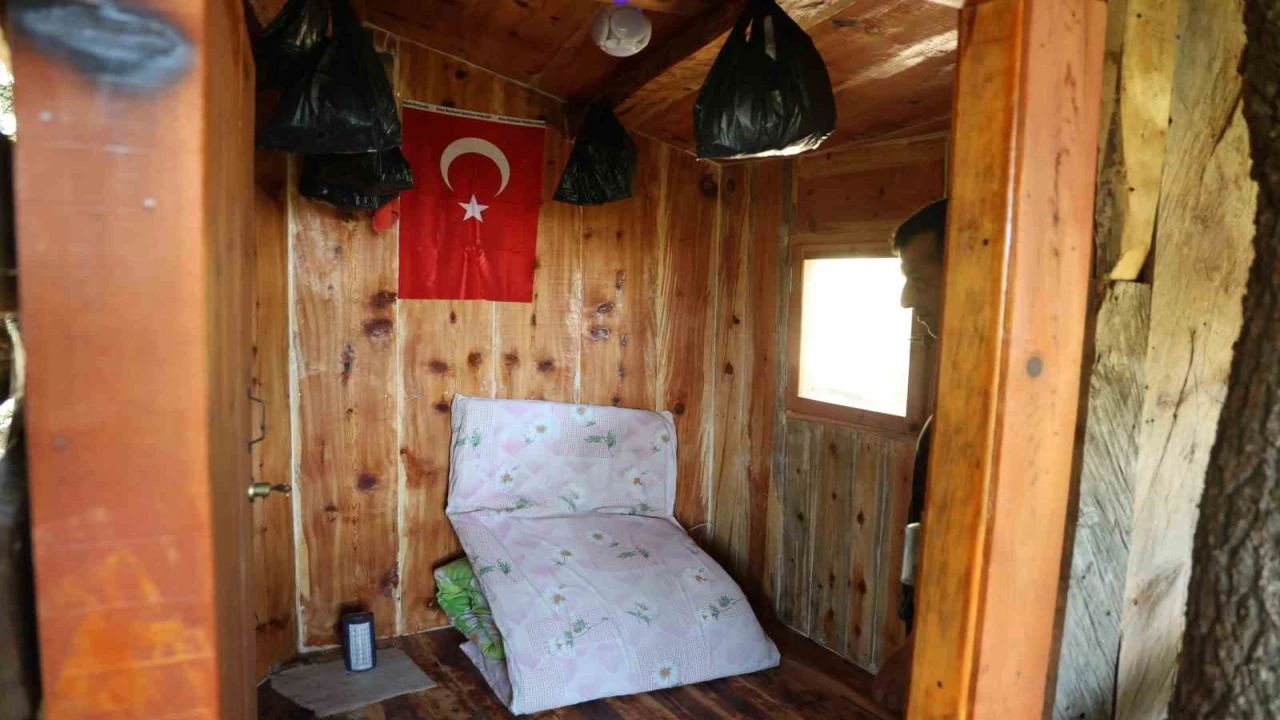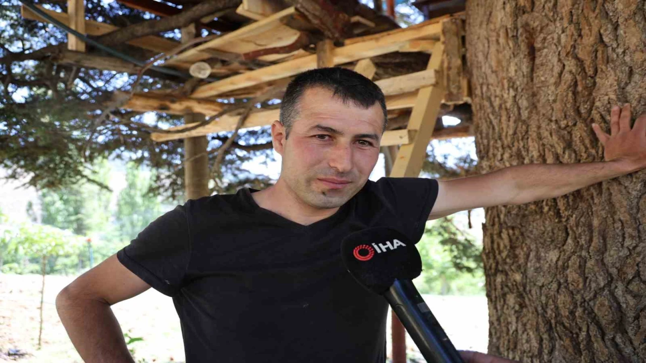 5 kardeşiyle tek bir çivi bile çakmadan bahçelerindeki Sedir ağacına evi tasarladıklarını belirten Musa Bayram; "Bu ağaca biz asırlık diyoruz ama yaşı daha fazla. 15 sene uğraştık yaptık. Şu an çalışmamız bitti. Çevresine ceviz ağaçları diktik. Ağaçta çivi yok. Dallarına ağaçları inşa ettik ve yıkılmaması için ağaç altlarından direklerle destekledik. Herkes gelip görebilir. Çok gelen var görenler hayran kalıyor. Burada kalmak isteyen var kiralamak isteyen var. Görenler çok beğeniyor. Arılar kendi doğal yuva yaptı arıların keyfi yerinde ellemiyoruz. Onlar kendi ormanında bizlerde ayrı birbirimize zarar vermeden yaşıyoruz. Serin oluyor ve çok keyifli oluyor" dedi.