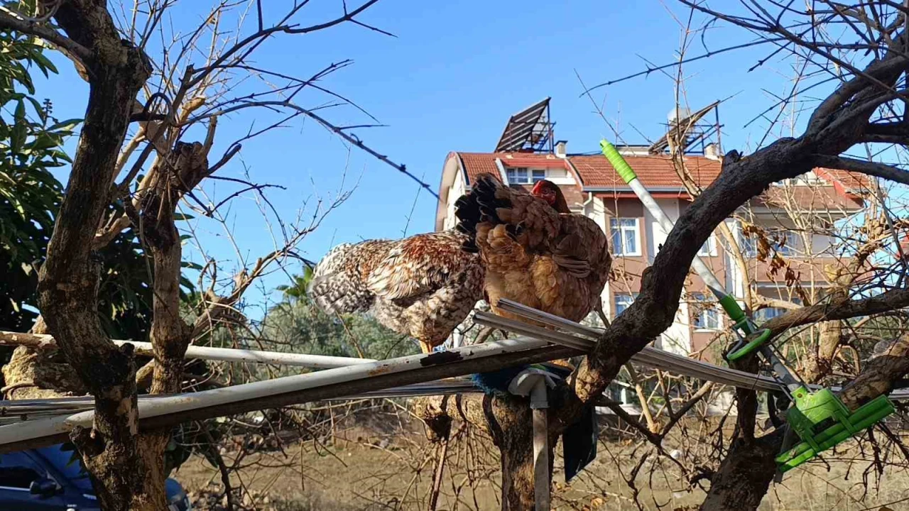 Side Mahallesi 1586 Sokak’taki bir apartmanın bahçesindeki kümeste bulunan tavukların bir bölümü, kümesten çıkamayarak suda boğularak telef olurken, kurtulan tavuklar korkudan kümese giremeyerek ağaçların tepesinde tünemeye başladı. Tavukların ağaç tepesinden inerek kümese dönmelerinin zaman alacağı belirtildi.
