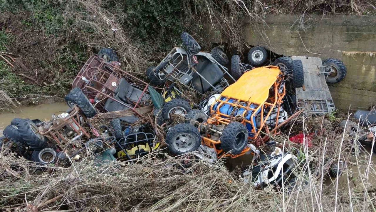 Turuncu alarmın sonrasında dün Manavgat genelinde etkili olan sağanak yağmur ve sel, ATV safari parkını da vurdu. Bucak Şıhlar Mahallesi’nde bulunan safari parktaki 120 adet ATV’den 40 tanesi sel sularına kapıldı. ATV safari tesisin sahibi ve çalışanları traktör ve kepçelerle çevredeki dereleri kontrol ederek bulabildikleri ATV’leri römorka yükleyerek tesise getiriyor.