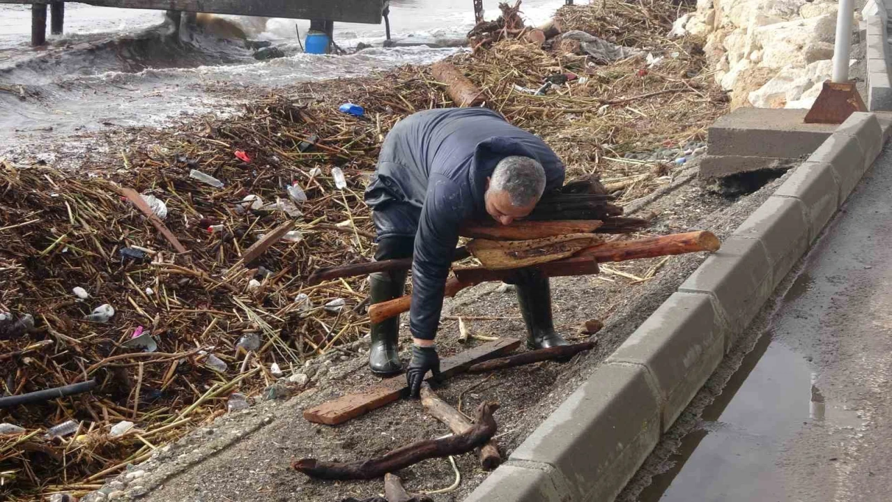 Kışlık odun için sahile geldiklerini ve çok miktarda çıktığını anlatan vatandaşlardan Osman Akkaya, "Dağlık köy ve arazilerdeki odunları sel sahile getirdi. Dereden kıyıya vuruyor, biz de kesiyoruz. Biraz zahmetli ama yapacak bir şey yok" dedi.