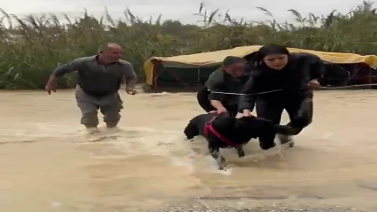 Turuncu kod uyarısı yapılan Antalya’nın doğu ilçelerinde yağışın en çok hissedildiği Manavgat’ta vatandaşların sel suları arasında barakada mahsur kalan bir köpeği kurtarma anları cep telefonu kamerası ile kaydedildi. Görüntülerde bir vatandaşların akıntıya rağmen beline bağladığı ip yardımıyla köpeğin bulunduğu barakaya gittiği ve bir süre sonra köpeği bulunduğu yerden çıkarttığı görüldü. Görüntülerde beline bağladığı ip ile köpeği kurmaya çalışan vatandaş, “İşyerinde çalışıyordum, komşular video attılar. Kafesin yarıya kadar su içindeki halini görünce işyerinden geldim. Geçer mi diye biraz bekledik. Birkaç yeri aradık, gelen giden olmadı. Sağ olsunlar komşularımla girdik köpeği alıp çıkardık. Buralar berbattı. Arabalar dizilmişti, bizim arabalar, üst taraftaki komşuların arabaları, burası hep araba dolmuştu. Birkaç aracı kendi imkanlarımızla çıkardık, kalanına da jandarma geldi, onlar çıkardı” dedi.