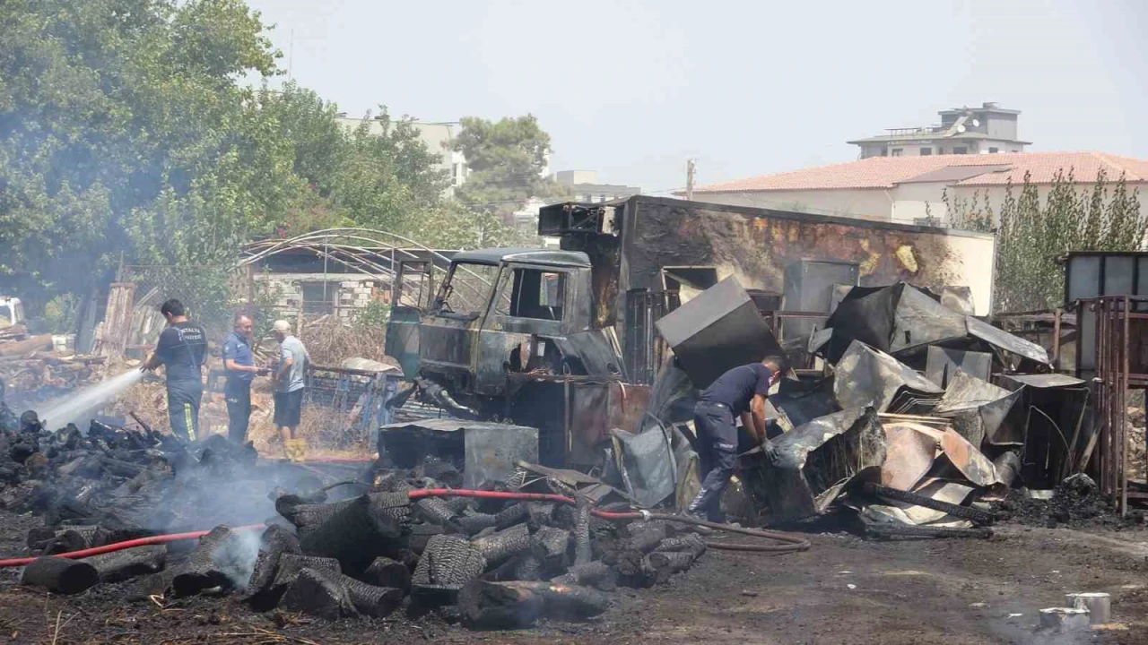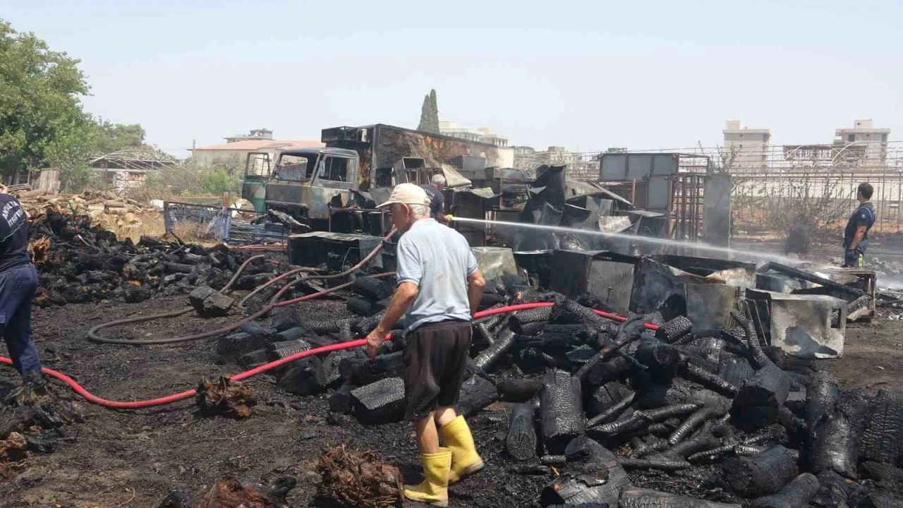 Antalya’da sera sökümü sırasında spiralden çıkan kıvılcımlar nedeniyle başladığı iddia edilen yangında 1 kamyonet ve atık malzemelerin yanı sıra satış amacıyla depolanan yaklaşık 10 ton odun küle döndü.