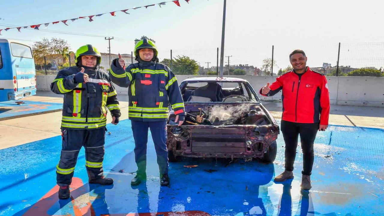 SEREBRAL PALSİ HASTASI DURMUŞ BOZDAĞ'IN 'İTFAİYE ERİ OLMA HAYALİ', BÜYÜKŞEHİR BELEDİYESİ EKİPLERİ TARAFINDAN GERÇEKLEŞTİRİLDİ. TAM DONANIMLI İTFAİYE KIYAFETLERİ GİYEN BOZDAĞ İÇİN ARAÇ YANGINI TATBİKATI YAPILDI.