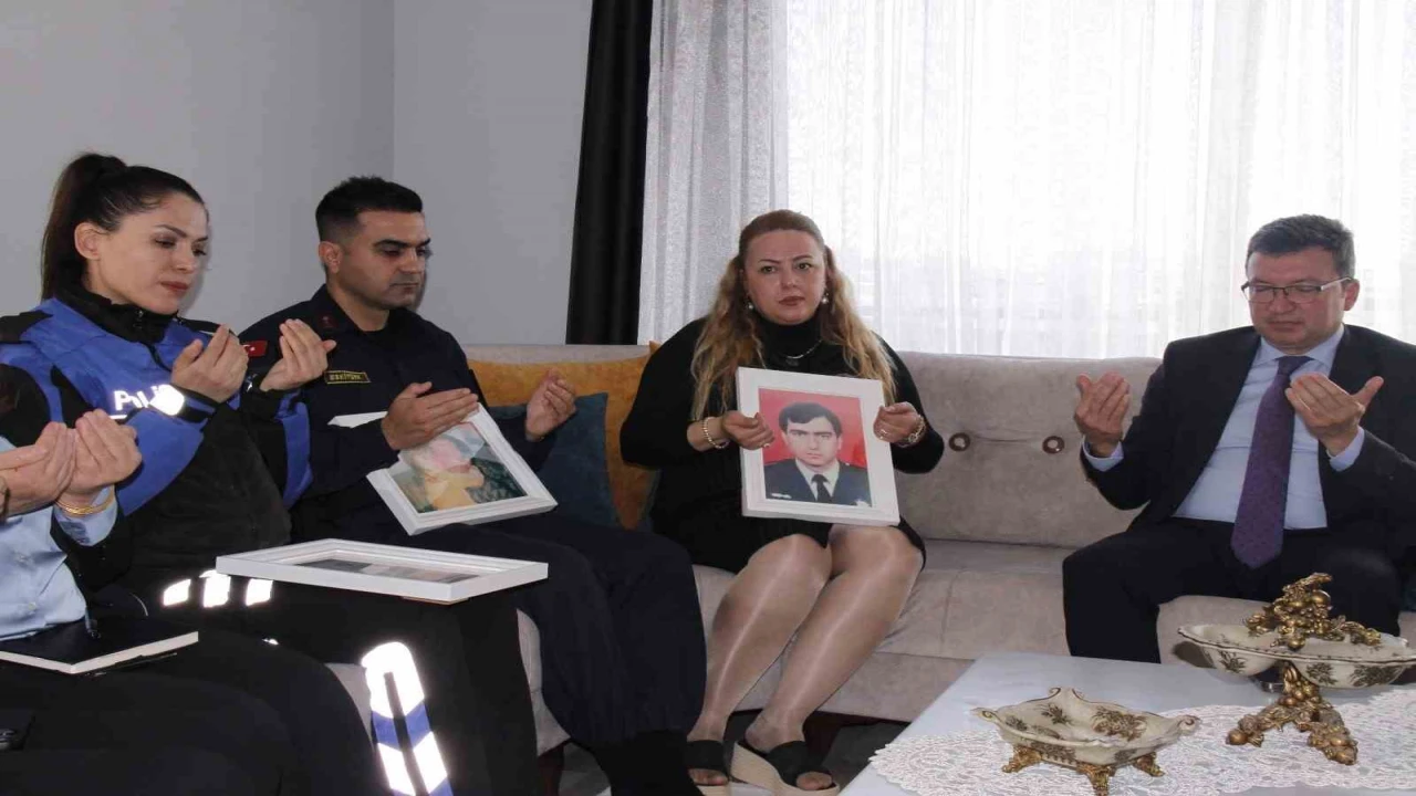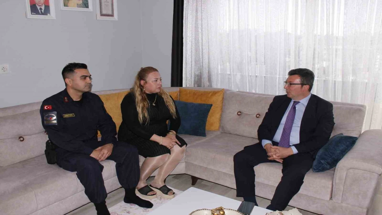 Serik Kaymakamı Dr. Cemal Şahin ve protokol üyeleri, şehidin kızı Deniz Eskitürk ile eşi Uzman jandarma Çavuş Bayram Ali Eskitürk’ü ziyaret etti.