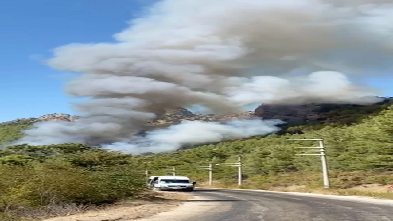 Bilginler Mahallesi’nde saat 14.30 sıralarında başlayan yangın için Orman Bölge Müdürlüğü arazöz ve yer ekiplerinin çalışması sürerken, helikopterin söndürme çalışmalarına destek verdiği bildirildi.