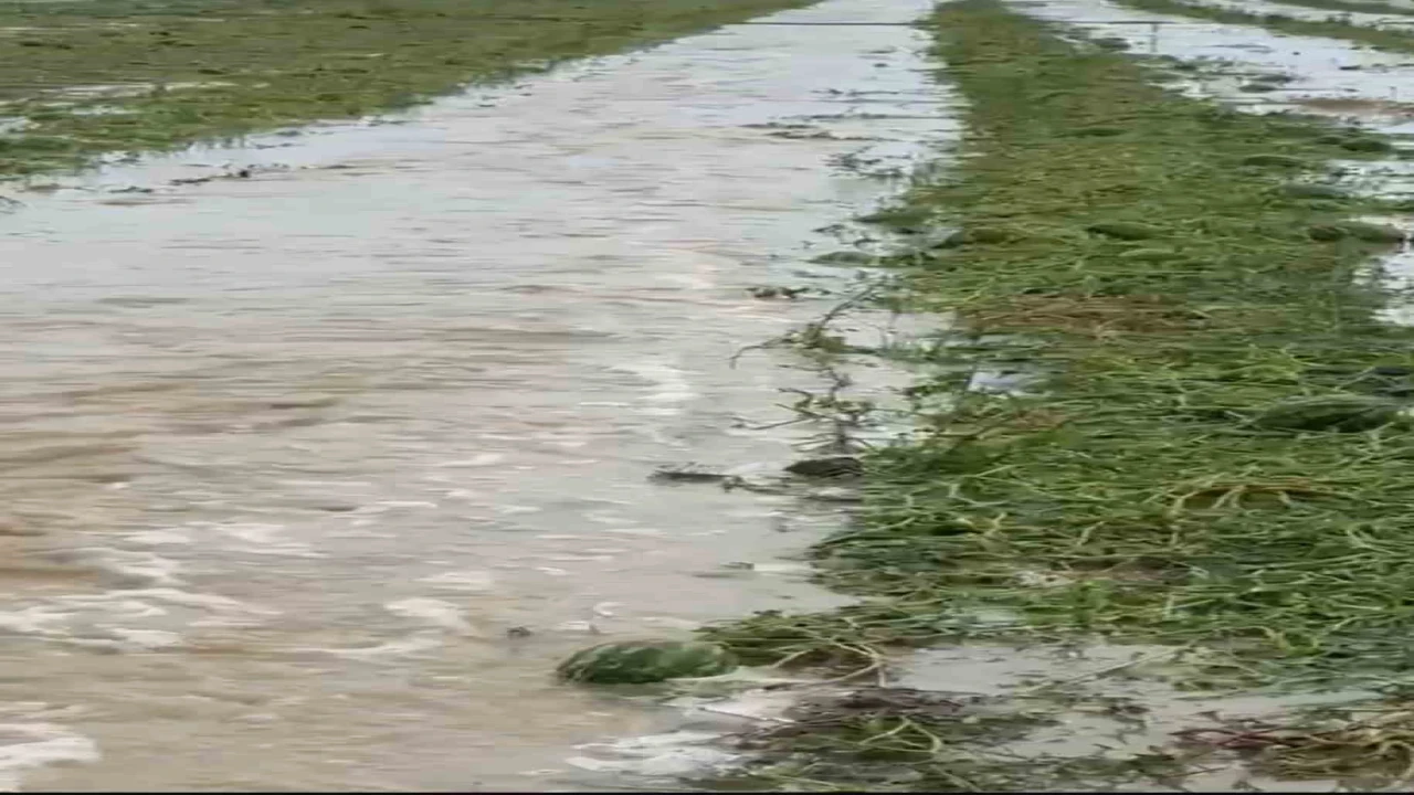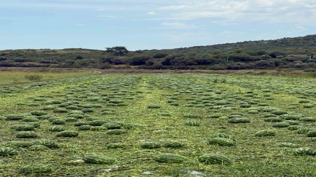 Çöken seralarda yetiştirilen domates ve biberler zarar görürken, açık alanda ekili karpuz tarlalarının da doludan olumsuz etkilendiği bildirildi.