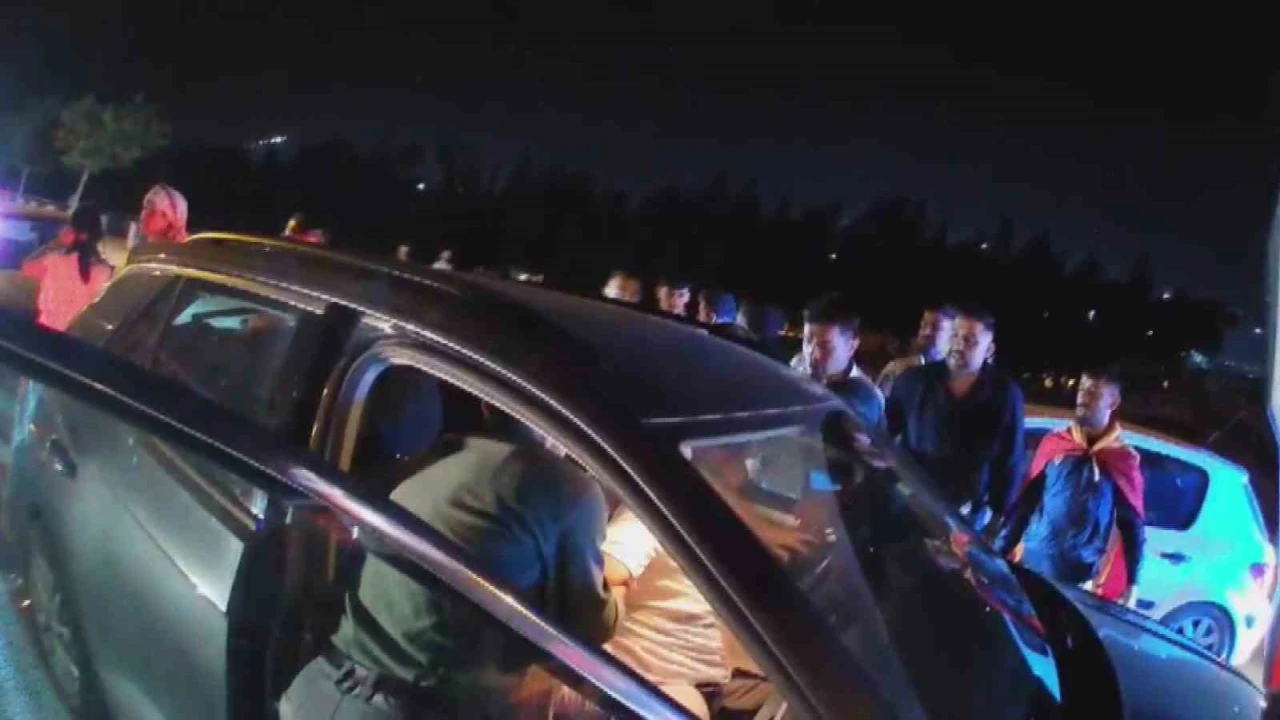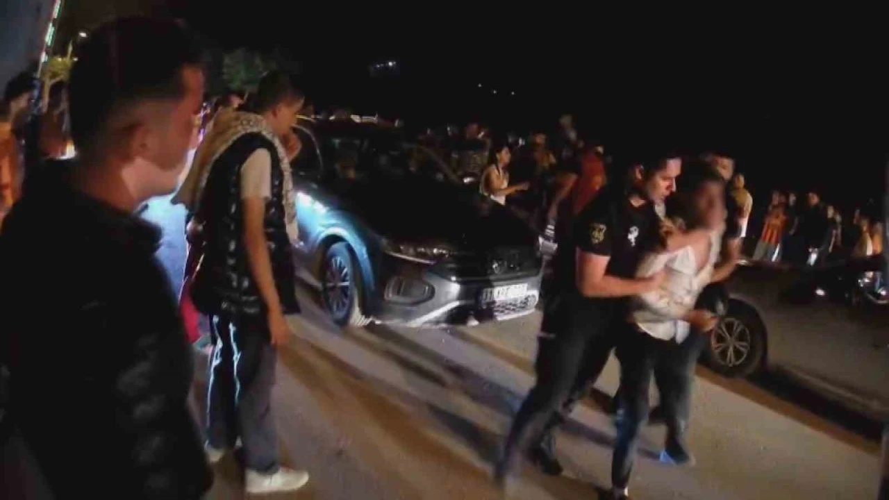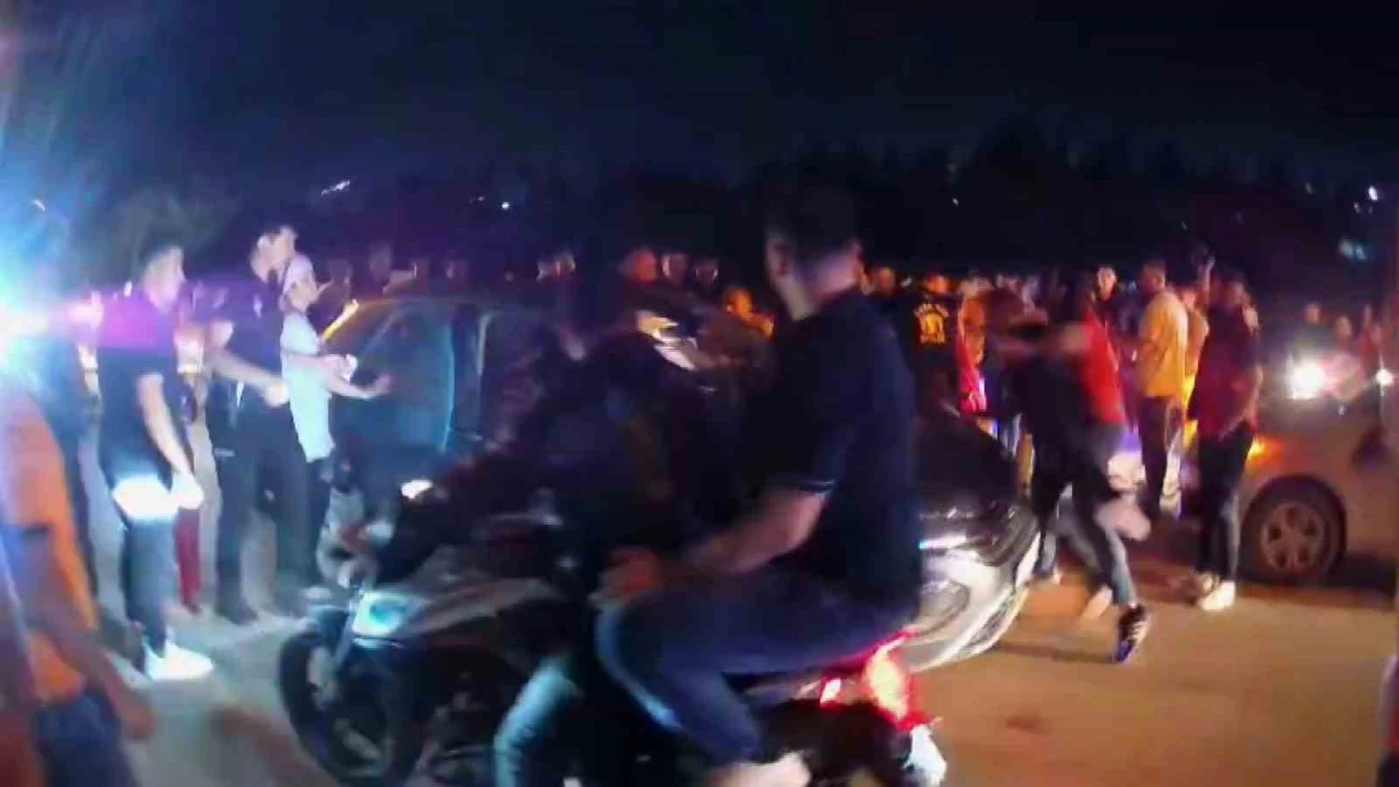 Kutlamalar esnasında bir araç sürücüsü ve taraftar grubu arasında kavga çıktı. Kavga esnasında bir kadının ‘Yardım edin’ diyerek kavgayı ayırmaya çalıştığı anlar dikkat çekerken polis ekiplerinin olay yerine gelmesiyle sakinleşen kavga an be an kameralara yansıdı.