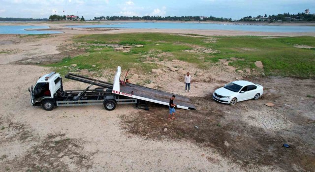 Bu sırada uyarılara rağmen otomobiliyle adaya gitmeye çalışan bir vatandaşın ise otomobili bataklığa saplandı. Otomobilini kendi imkanlarıyla çıkartamayan vatandaş çekici yardımıyla otomobilini bataklıktan kurtardı. O anlar ise saniye saniye görüntülendi.