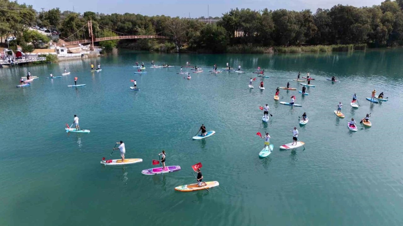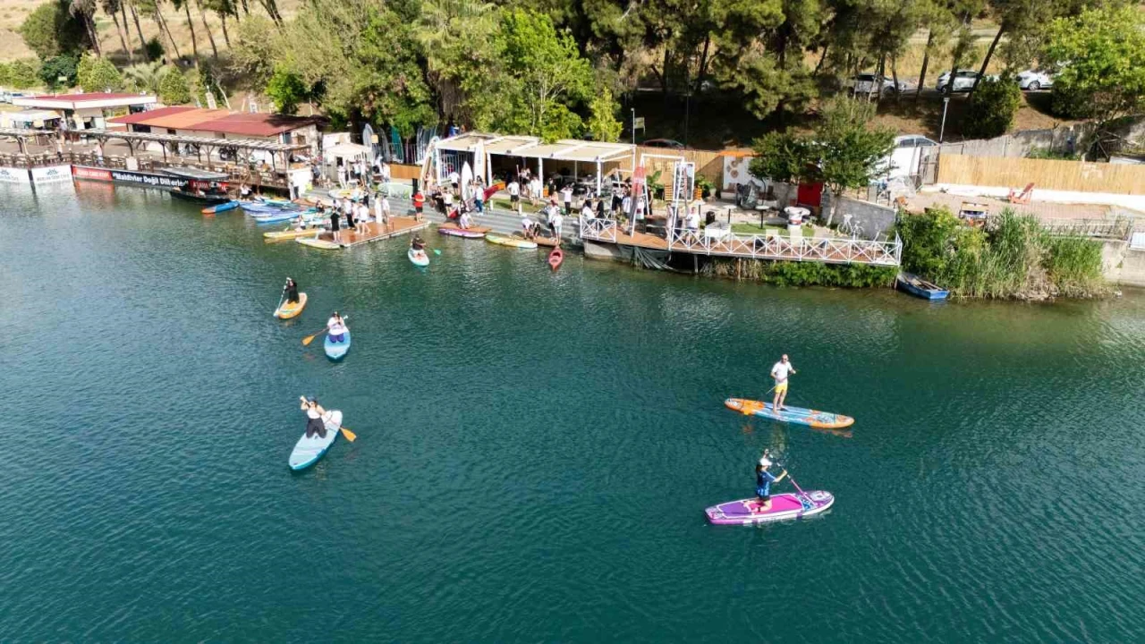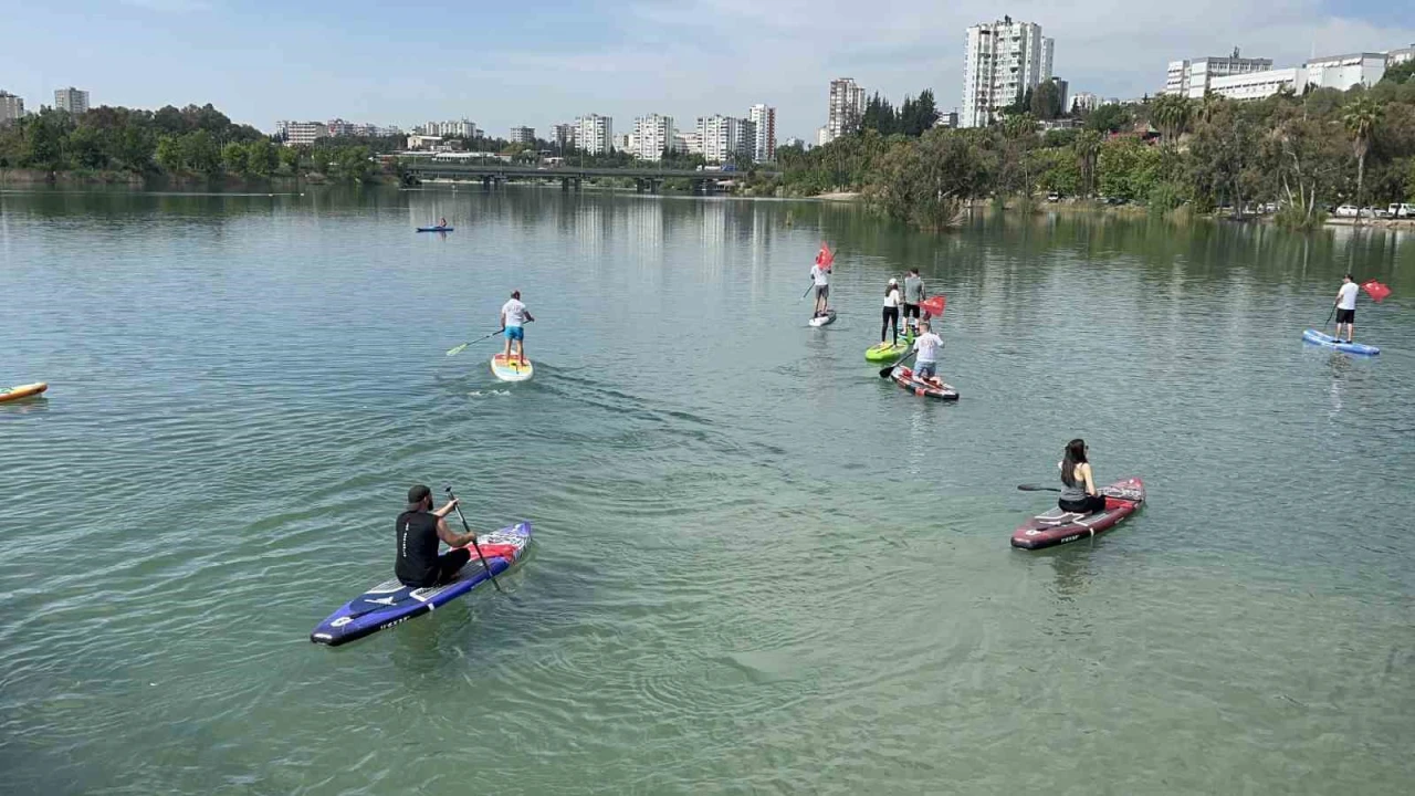 SEYHAN NEHRİ'NDE VATANDAŞLAR, HAFTA SONUNU FIRSAT BİLİP KANO VE KÜREK SÖRFÜ YAPTI