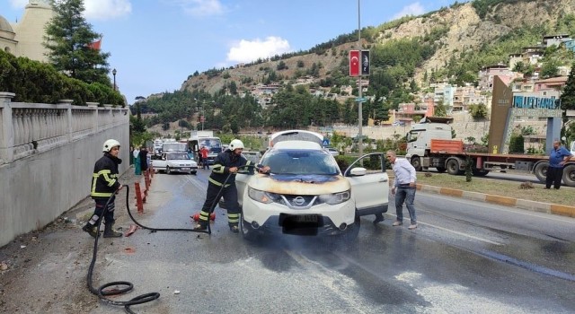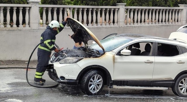 HATAY (İHA) - Hatay’da seyir halindeyken motor kısmı alev alan cipte hasar oluştu.