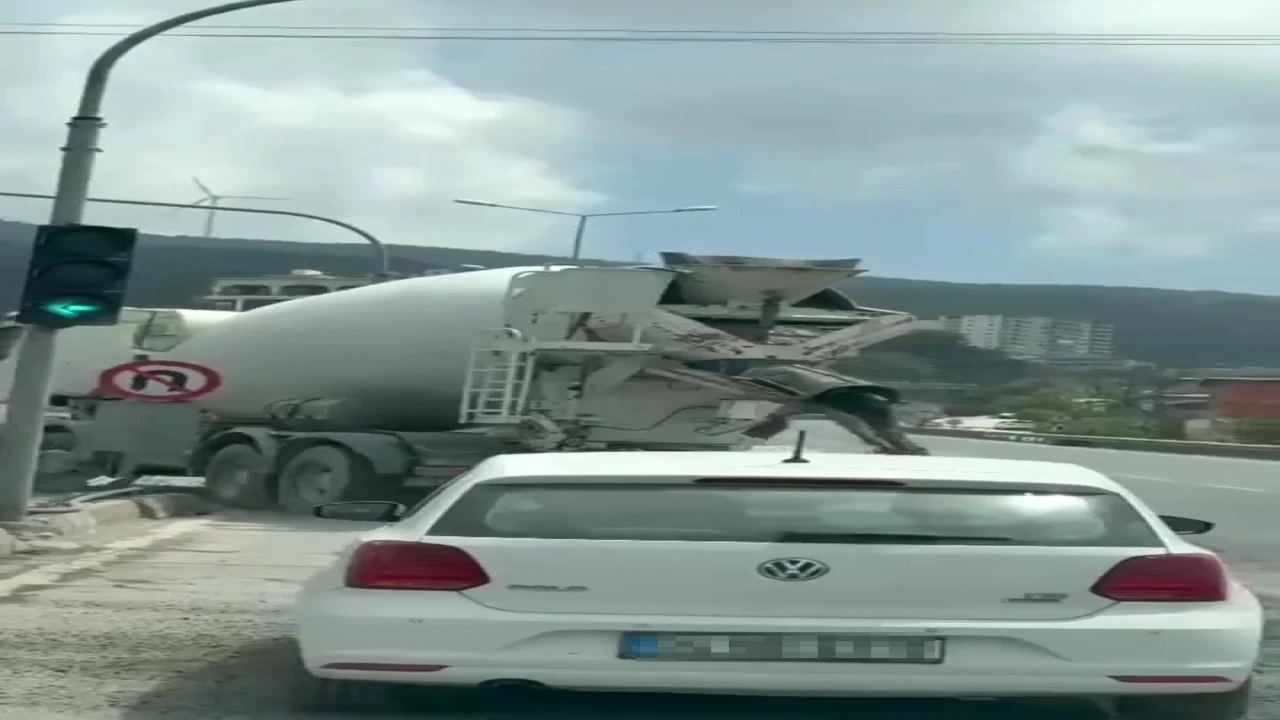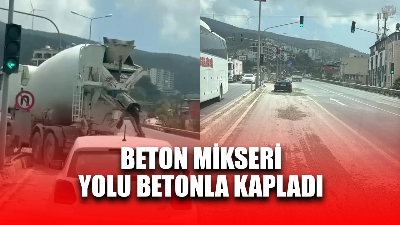 Belen ilçesinde seyir halinde olan beton mikseri, aşırı yükleme sonucu dönüş esnasında yola beton döktü. Mikserin arkasında seyreden bir otomobilse üzerine beton dökülmekten saniyelerle kurtuldu. Mikserden yola beton döküldüğü anlar kameraya yansırken, yol betonla kaplandı.