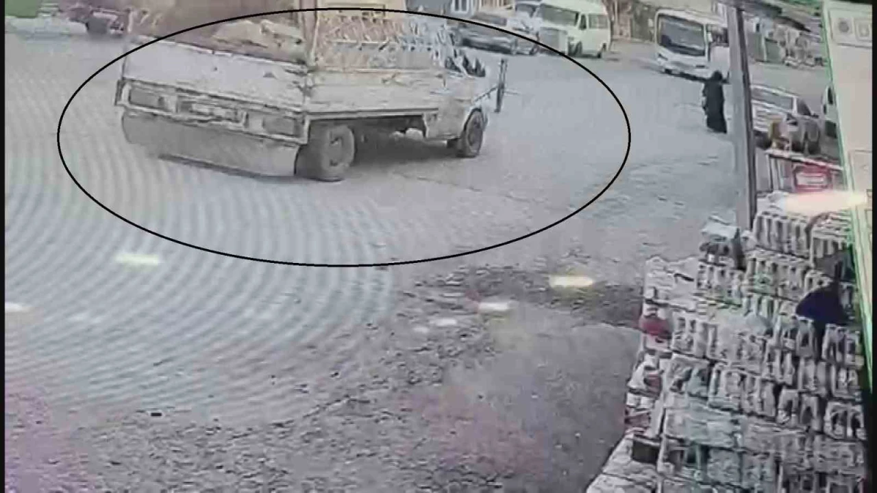 Seyir halindeki pikabın açılan kapağı kadının kafasına çarptı... O anlar kamerada