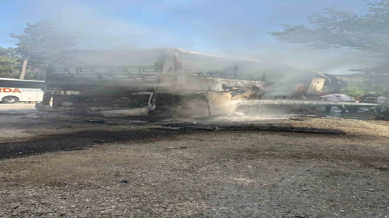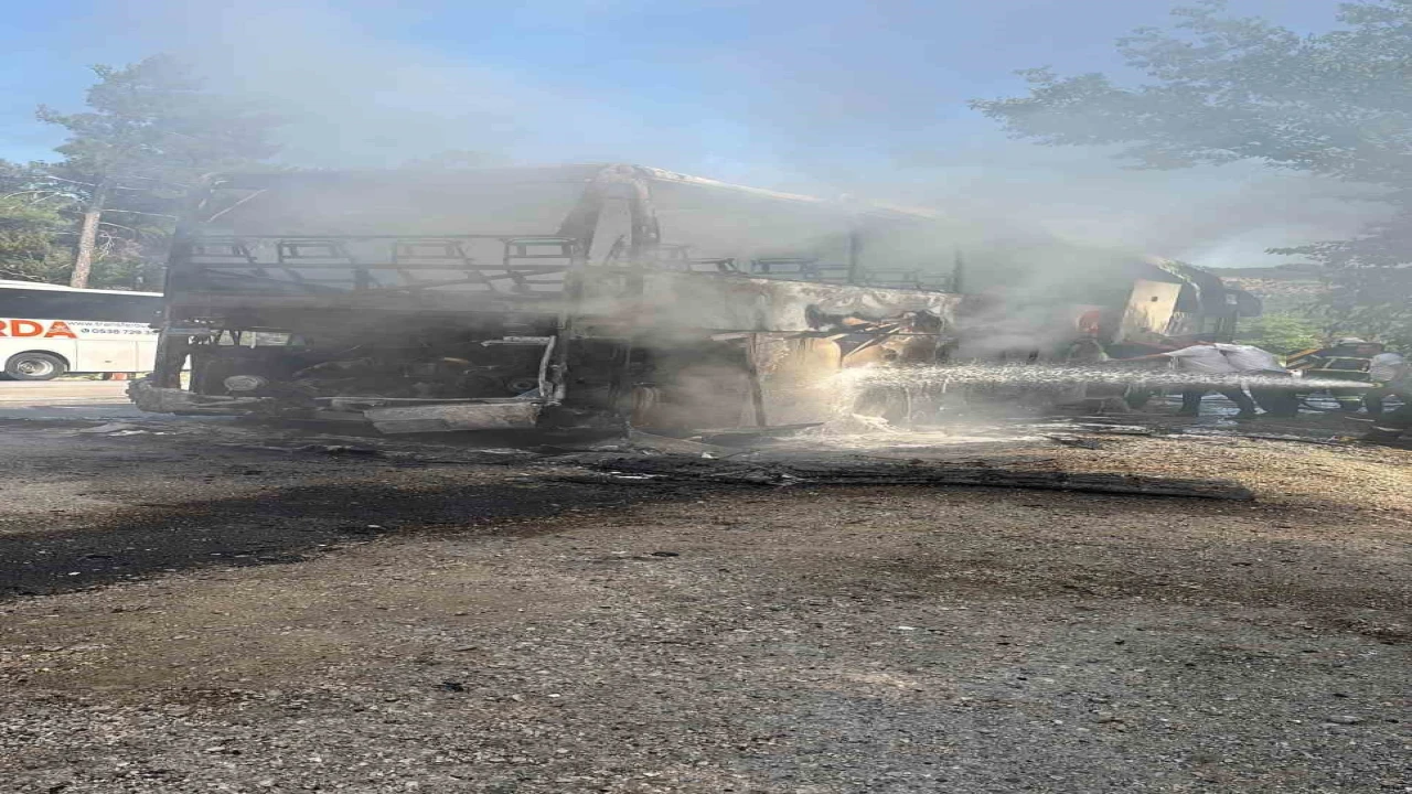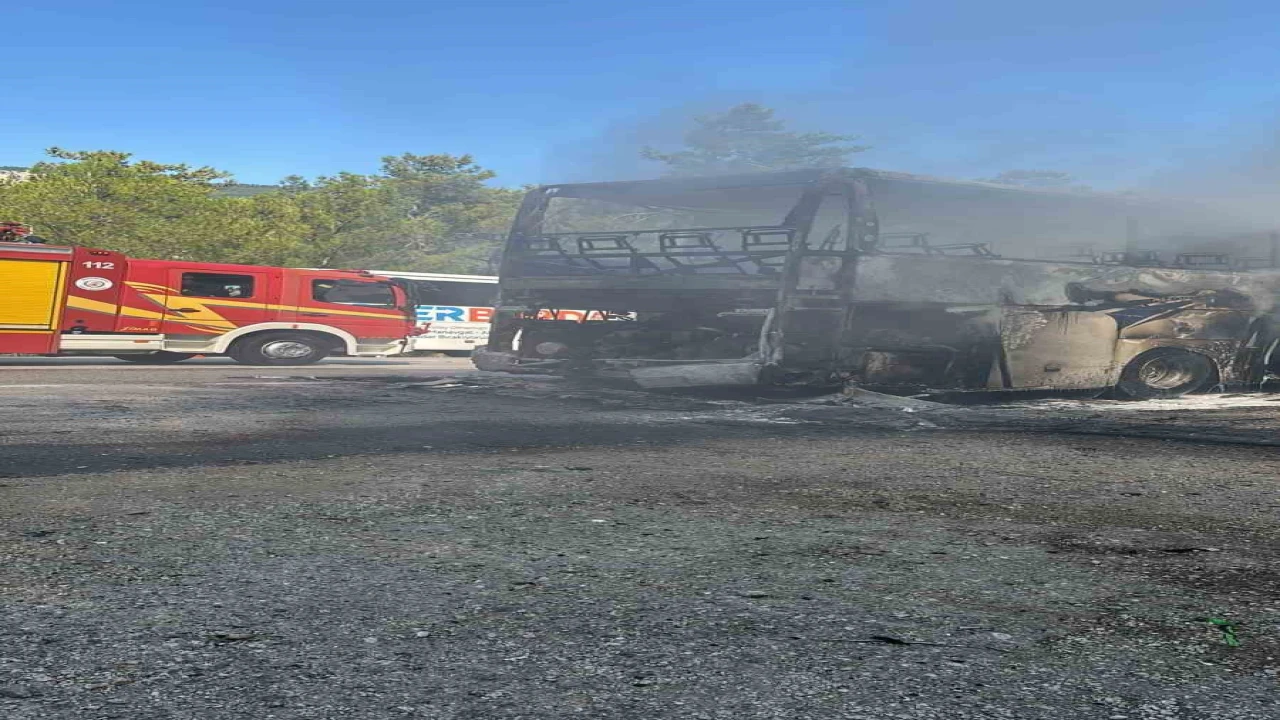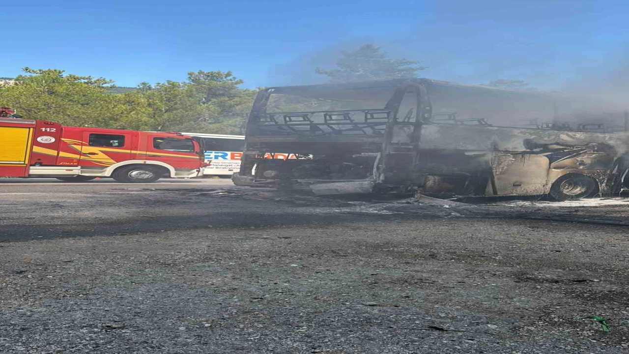 Isparta-Antalya kara yolunda seyir halindeyken alev alan yolcu otobüsünde yolcular son anda tahliye edildi. Yangında can kaybı yaşanmazken, otobüsün yarısı küle döndü.