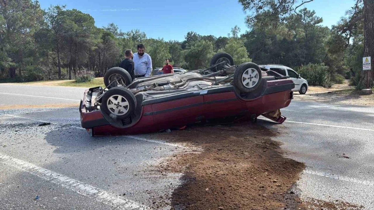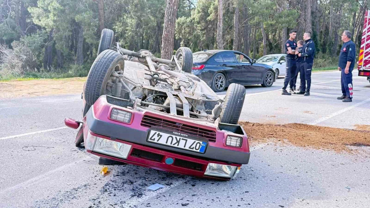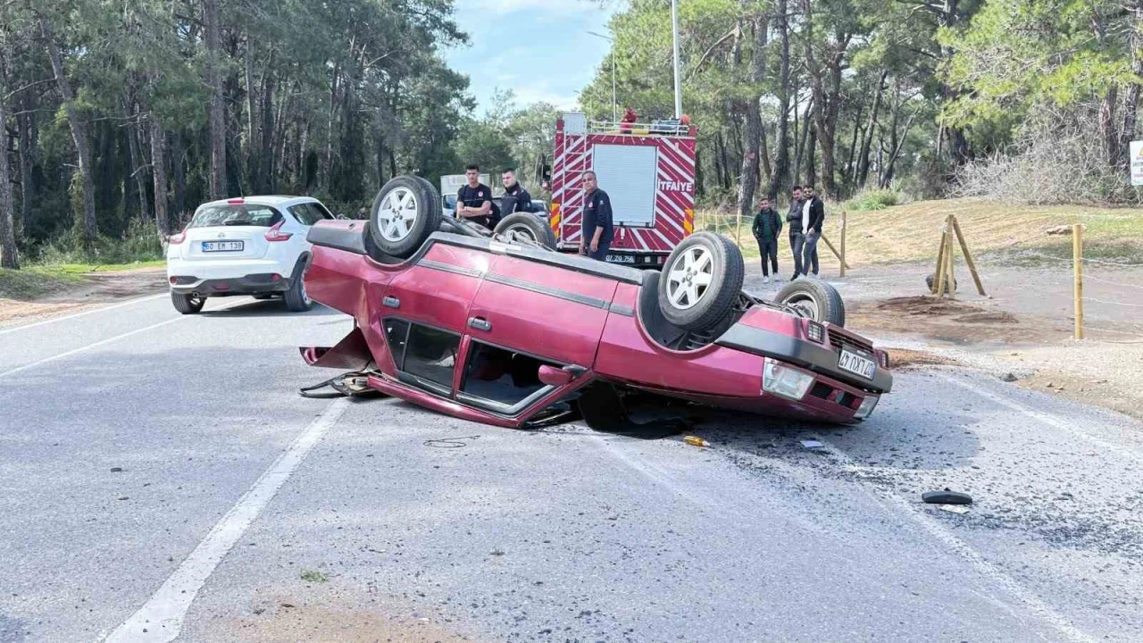 Antalya’nın Manavgat ilçesinde devrilerek ters dönen otomobilin sürücüsü ve yolcu olarak bulunan 1 kişi kazayı şans eseri yaralanmadan atlattı.