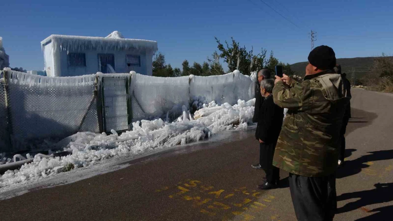 Mahalle sakinlerinden Nazım Coşkun, "Buradan sulama suyu geçiyor. Akşam su fışkırmaya, gece de donmaya başladı. Sabah namazına giderken baktım her yer bembeyaz olmuştu. Böyle bir manzarayı ilk defa gördüm. Görüntü süper rüya gibi çok güzel" dedi.