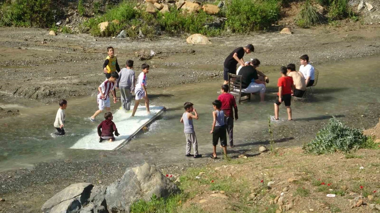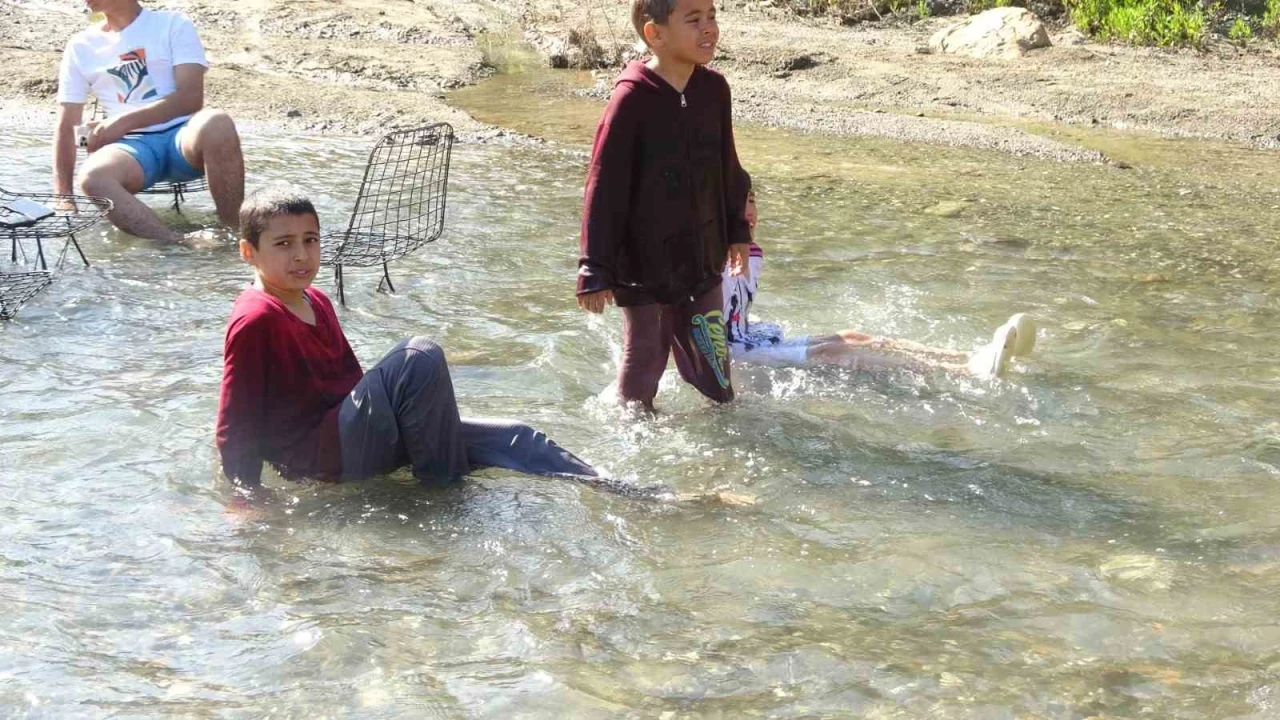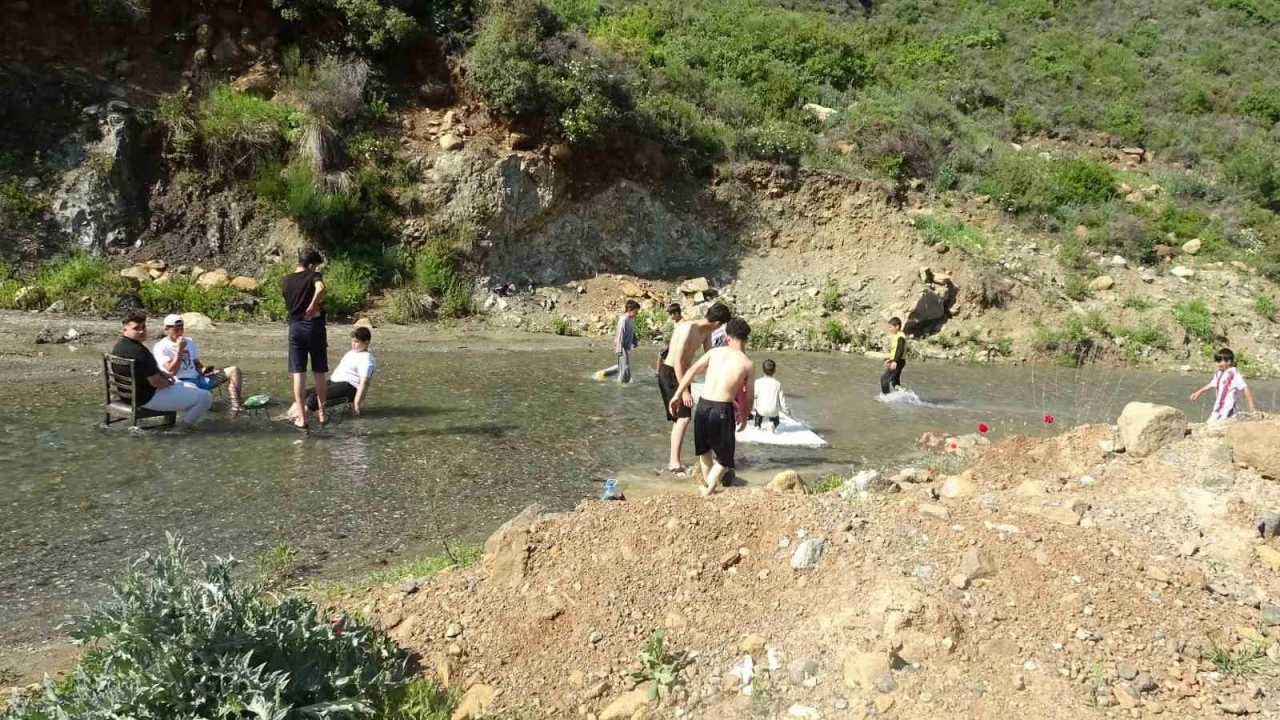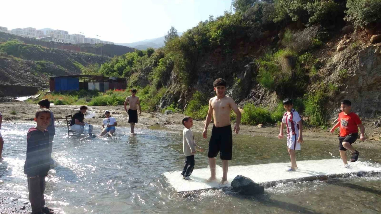 HATAY'DA SICAK HAVADAN BUNALARAK SERİNLEMEK İSTEYEN ÇOCUKLAR, DEREDE YÜZDÜLER.
